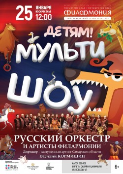 В детской программе «Мульти-шоу» солисты и Русский оркестр под управлением заслуженного артиста Самарской области Василия Кормишина исполнят любимые мелодии из мультфильмов «Летучий корабль», «Маша и Медведь», «Фиксики», «Паровозик Букашка» и многие другие.