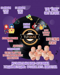 Встречаемся 30 января (пятница) в 19-00 31 января (суббота) в 18-00 в ТРЦ "Ёлка" Зал Tltquiz